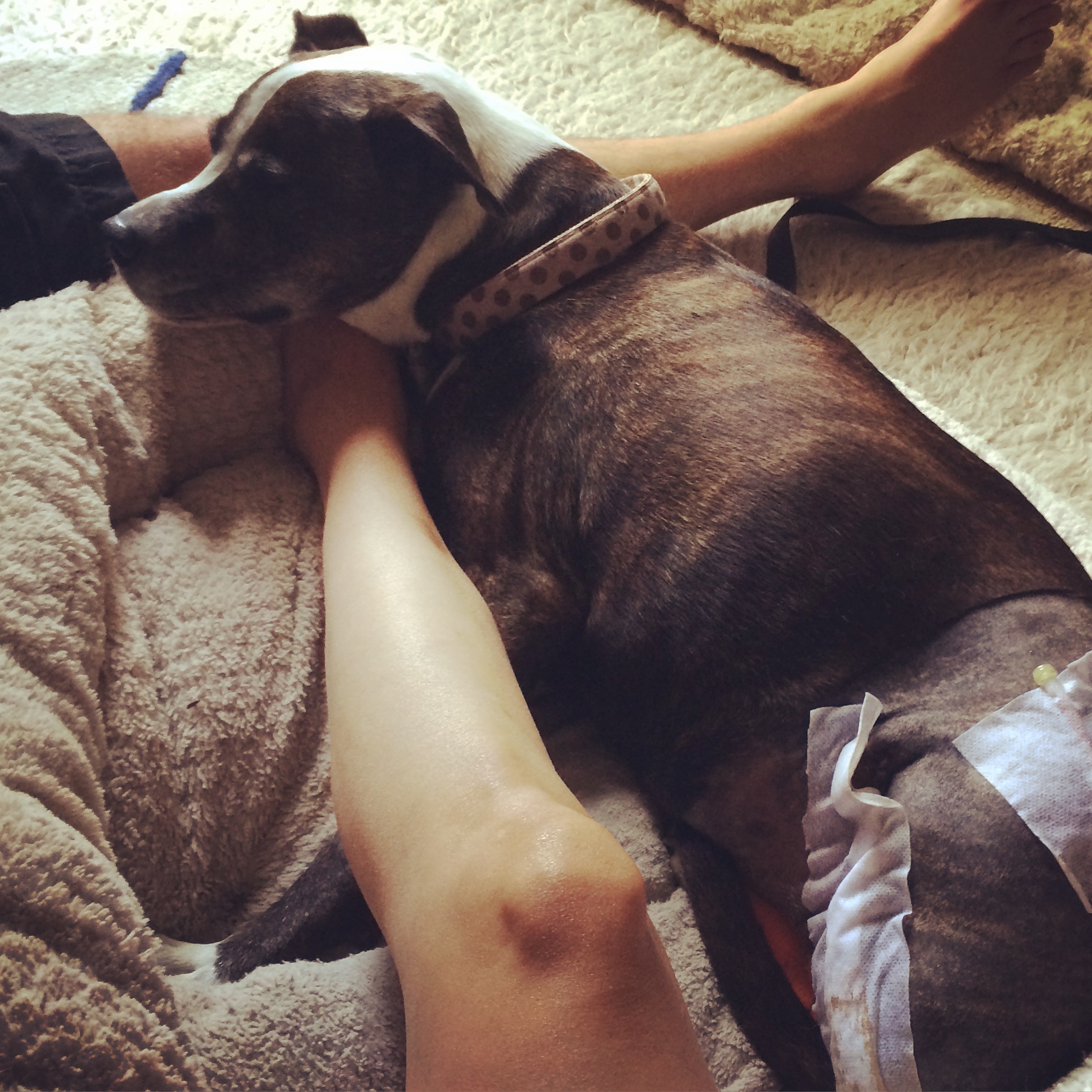 She’s home! She did so well overnight, we got to pick up first thing this morning! She is already walking and navigating steps like she has been a tripawd (We learned that term from 3-legged-dog youtube research we conducted last night.) all her life. Love this girl!!