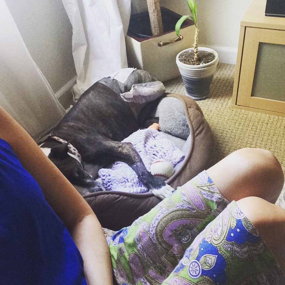 She did ok at home, but she was generally a little unsettled, disoriented, and, well…stoned. She was like that stoner friend in college who would walk into a room and then forget why he had moved from point A to point B. The only way she’ll settle down & relax is if her mama stays right next to her. It’s nice to be loved.
