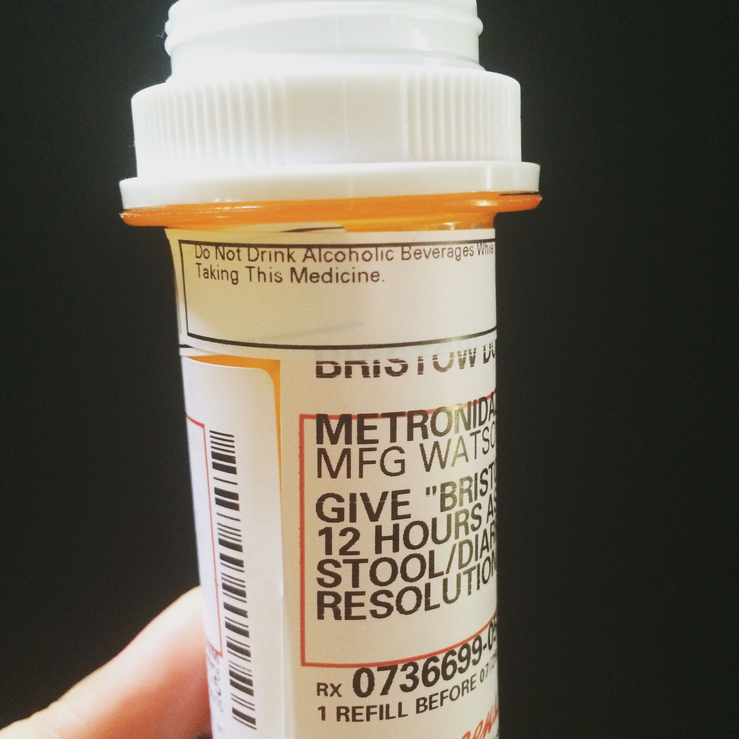Later that day, she had a softer stool, so we also started the anti-diarrhea meds, too. After taking that one, per pharmacist’s orders, we denied her her usual nightcap.
